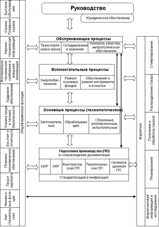 Упорядоченная совокупность функций и их взаимосвязь для выполнения целей предприятия составляют функциональную структуру предприятия. Укрупненная функциональная структура предприятия представлена на рис. 1.