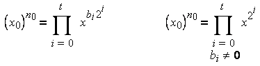Возьмём моноид М с операцией умножения и рассмотрим некоторый элемент x0 из М, а также произвольное натуральное число n0. Для того, чтобы вычислить , представим n0 в двоичной системе счисления: