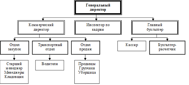 Генеральному директору непосредственно подчиняются коммерческий директор, главный бухгалтер и инспектор по кадрам.