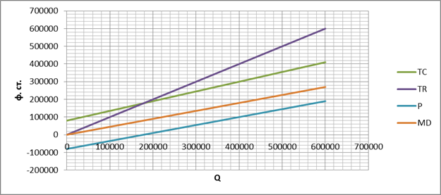 MD – маржинальный доход, разность между выручкой предприятия и ее переменными затратами