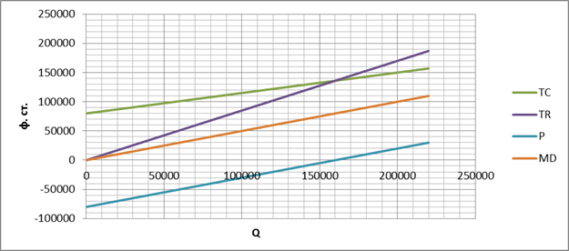 MD – маржинальный доход, разность между выручкой предприятия и ее переменными затратами