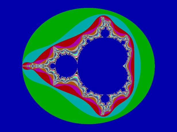 Несложно написать программу для построения множества Мандельброта. Единственная проблема, которая может возникнуть при использовании этой программы на маломощных ЭВМ --- большой объем вычислений. Для того, чтобы получить приемлемое изображение множества, желательно отображать по меньшей мере 256x256 пикселов. Более удачные визуализации получаются при использовании окна 400x400 пикселов и более. При этом количество итераций достаточно 20-ти. Для получения более качественного построения множества можно увеличить количество итераций до 50, 70, 100 и более.