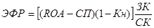 Рассчитаем эффект финансового рычага с учетом выплаты процентов по кредиту: