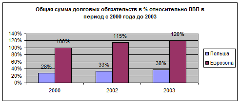 Объем рынка долговых обязательств Польши на начало 2004 года достиг €69,462 миллионов, составляя 38% от ВВП [4] 89.