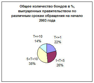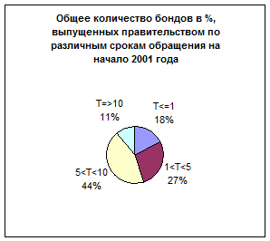 Согласно структуре срока погашения, 38% долговых обязательств в национальной валюте, выпущенных центральным правительством, имели первоначальный срок оборачиваемости, пять лет или больше, но меньше десяти лет. Долговые обязательства со сроком оборачиваемости от одного до пяти лет (включительно) составили 26% от общего количества. Краткосрочные долговые обязательства со сроком оборачиваемости до одного года включительно представили 22% от общего количества. И самая маленькая доля приходится на бонды, выпущенные в национальной валюте со сроком обращения от десяти и более лет, составляя 14%.