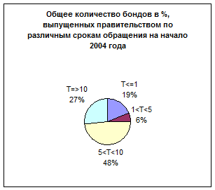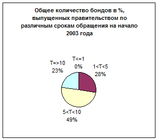 В конце 2002 года 93% долговых обязательств выпущенных государственным управлением имеют продолжительность жизни от 5 до 10 лет; 3% от 10 и более лет и долговые ценные бумаги со сроком действия от 1 до 5 лет составили 4% от общего количества.