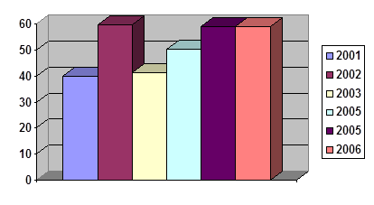 Рис.4. Изменение доли межбюджетных трансфертов местным бюджетам в расходах окружного бюджета в 2001-2006 годах.