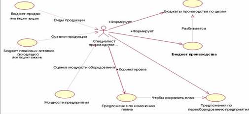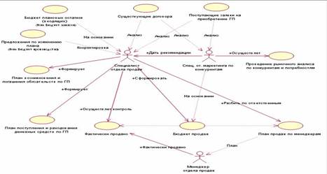 На базе проведенного рыночного анализа отделом маркетинга, договорам намерений, договорам купли продажи, заключенными отделом продаж и поступивших заявок на покупку продукции формируется бюджет продаж продукции предприятия (Рис. 2).