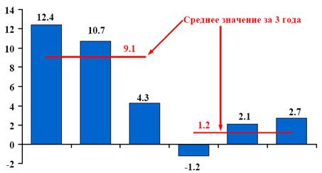 В последующие годы доходы в относительном выражении будут уменьшаться. Результатом такой динамики станет снижение профицита федерального бюджета с 4,6% ВВП в 2008 г. до 1,1% ВВП в 2011 г.