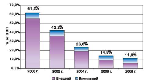 и, следовательно, расширение доступа российских предприятий к международным кредитным рынкам. Долгосрочная сбалансированность бюджетной системы, поддержание необходимого для обеспечения устойчивости государственных финансов Стабилизационного фонда, последовательное сокращение долгового бремени — залог финансовой стабильности, безусловного выполнения принятых расходных обязательств, снижения зависимости бюджетной системы и страны в целом от внешних условий.