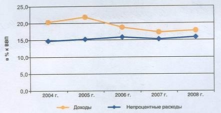 Рис. 3 Доходы и непроцентные расходы федерального бюджета