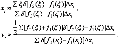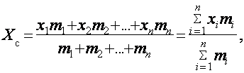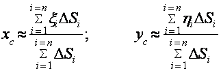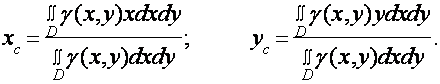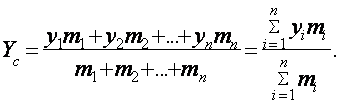 Обозначим через xc и yc координаты центра тяжести данной системы. Тогда координаты центра тяжести описанной материальной системы определяются формулами: