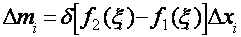 Разобьем данную фигуру прямыми x=a, x=x1, . . . , x=xn=b на полоски ширины Dx1, Dx2, . . ., Dxn. Масса каждой полоски будет равна произведению ее площади на плотность d. Если каждую полоску заменить прямоугольником (рис.1) с основанием Dxi и высотой f2(x)-f1(x), где x