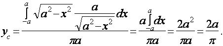 Условие: Найти координаты центра тяжести полуокружности X2+Y2=a2, расположенной над осью Ox.