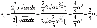 Условие: Определить координаты центра тяжести сегмента параболы y2=ax, отсекаемого прямой, х=а (рис. 2)