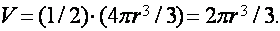 При вращении четверти круга вокруг оси Ох получим полушар, объем которого равен