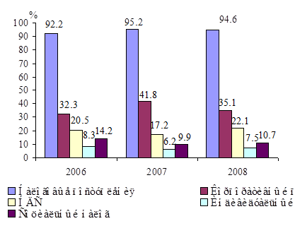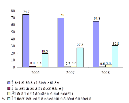 Таблица 9. Структура доходов бюджета Карагандинской области за 2006-2008 годы. (%)