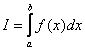 при условии, что a и b конечны и f(x) является непрерывной функцией на всем интервале (a, b). Значение интеграла I представляет собой площадь, ограниченную кривой f(x),осью x и прямыми x=a, x=b. Вычисление I проводится путем разбиения интервала от a до b на множество меньших интервалов, приближенным нахождением площади каждой полоски, получающейся при таком разбиении, и дальнейшем суммировании площадей этих полосок.