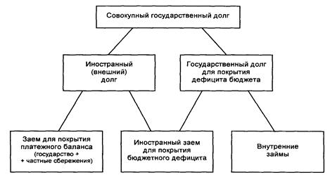 Та часть, которую государство занимает за рубежом для покрытия дефицита государственного бюджета, будет, таким образом, входить как в государственный, так и во внешний (иностранный) долг.