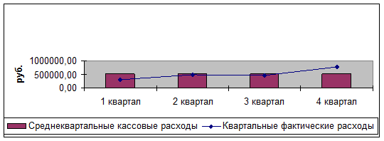 Но кассовое исполнение расходов бюджета города осуществлялось неравномерно. Среднеквартальный кассовый расход составляет 511 116,28 тыс.руб. Кассовые расходы в 4 квартале 2007 года были на 52% выше среднеквартальных кассовых расходов бюджета города, а в 1 квартале – ниже на 39 %.