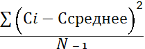σс = ∑(Сi – Cсреднее)²/(N – 1) – среднеквадратическое отклонение курса спот;
