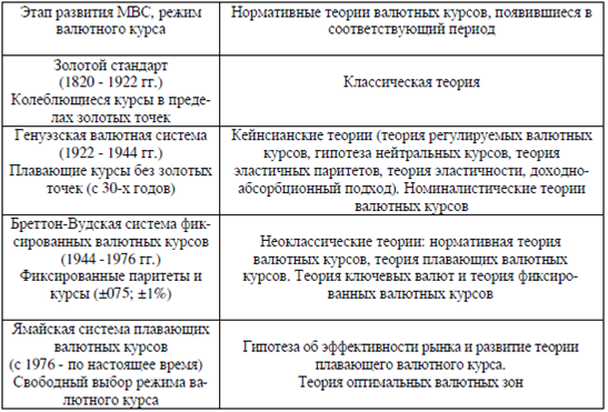 Таблица 1. Развитие МВС и нормативных теорий валютного курса[3]