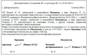 Образец составления дополнительного соглашения к основному договору, предусматривающего использование в расчетах простого векселя