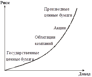 Важным классификационным признаком для ценных бумаг является уровень риска. По уровню риска виды ценных бумаг располагаются следующим образом (рис.1.1). То есть чем выше доходность, тем выше риск; чем выше гарантированность ценной бумаг, тем ниже риск и доходность. [23;253]