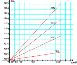 Для расчета краткосрочных ссуд часто используется схема простых процентов, при этом используют процентную ставку равную доле годовой процентной ставки, где доля соответствует отношению периода начисления процентов в днях к продолжительности года в днях.