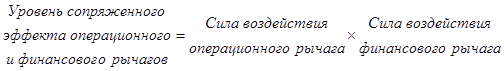 Очень важно заметить, что сочетание мощного операционного рычага с мощным финансовым рычагом может оказаться губительным для предприятия, так как предпринимательский и финансовый риски взаимно умножаются, мультиплицируя неблагоприятные эффекты. Взаимодействие операционного и финансового рычагов усугубляет негативное воздействие сокращающейся выручки от реализации на величину нетто-результата эксплуатации инвестиций и чистой прибыли.