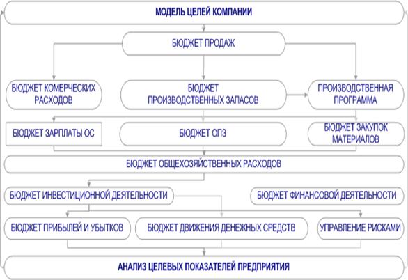 Формирование мастер-бюджета (на рисунке сверху) осуществляется по схеме, предусматривающей взаимодействие «верхов» и «низов», и представляет из себя единый процесс, целью которого, в том числе является обеспечение коммуникации и обучения специалистов, достижение корпоративного консенсуса относительно целей и способов их достижения, через постоянное согласование различных бюджетов предприятия.