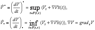 (т.е. имеются непрерывные производныепервого порядка) определяются верхняя и нижняя производные в силу диф. включения (2):