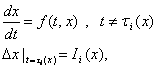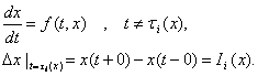 Совокупность соотношений а) – в) называют системой диф. уравнений с импульсным воздействием.