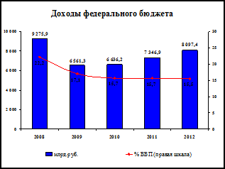 Сравнительный анализ сопоставимых показателей свидетельствует, что доходы федерального бюджета в период 2010-2012 годов незначительно вырастут по сравнению с уровнем 2009 года и в течение трех лет будут находиться на уровне 15,6-15,7% ВВП.