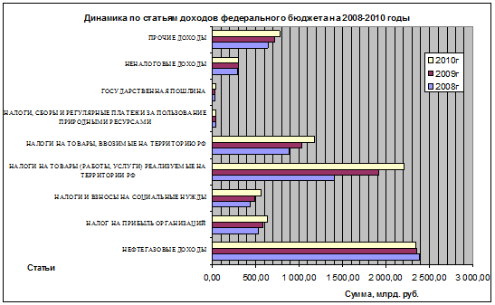 Диагр. 1.1. Динамика по статьям доходов федерального бюджета на 2008-2010 годы