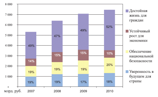 Бюджет 2008–2010 годов направлен на повышение уровня жизни населения и выполнение всех обязательств перед гражданами, поддержку стратегических и инновационных отраслей, обеспечение безопасности, создание потенциала для устойчивого развития страны: