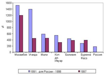 Списание части внешнего долга является одной из процедур, применяемых в случае возникновения значительных финансовых трудностей у страны-заемщика. Так, с 1995 г. Всемирный банк и МВФ осуществляли руководство программой HIPC, в рамках которой было проведено списание долгов семи государств на 3 млрд. дол. Боливия, Буркина-Фасо, Кот-д'Ивуар, Гайана, Мозамбик, Мали и Уганда приняли участие в программе как страны с низким ВВП и чрезмерно высоким уровнем задолженности. Мы попытались оценить насколько положение Российской Федерации соответствует критериям отбора, использованным в программе HIPC.