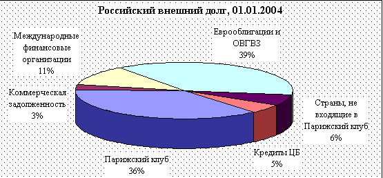 В январе 1992 г. правительство РФ заключило первое соглашение о реструктуризации долга с Парижским клубом кредиторов, за ним последовали три реструктуризации в 1993-1995 гг., которые охватывали процентные выплаты в период с декабря 1991 г. по конец 1995 г. В апреле 1996 г. было достигнуто принципиальное соглашение с Парижским клубом о реструктуризации приблизительно $40 млрд. задолженности кредиторам клуба. Около 45% этой суммы будет выплачено в период до 2020 г., остальные 55% (которые включают все краткосрочные долги Парижскому клубу) - до 2016 г. Выплаты по основному долгу, постепенно увеличиваясь, будут производиться с 2002 г. Размер задолженности РФ Парижскому клубу кредиторов составляет на данный момент $35 млрд.