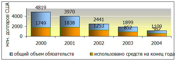 Ниже представлен общий объем обязательств по привлечению средств, предусмотренный Программой государственных внешних заимствований (кредиты правительств иностранных государств)