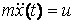Пример 1. Рассмотрим прямолинейное движение тела постоянной массы m под действием управляющего воздействия u, создаваемого установленным на теле двигателем. Обозначим через х координату центра масс тела и предположим, что никакие другие силы на тело не действуют. Тогда в соответствии со вторым законом Ньютона уравнение движения тела имеет вид