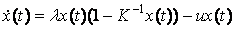 Пример 2. Охота, рыбная ловля, вырубка леса и т.д. представляют собой способы управления окружающей средой. Рассмотрим популяцию, численность которой x(t) в момент t регулируется с помощью управляющего воздействия u. Тогда для моделирования изменения х(t) может быть использовано уравнение П.Ф.Ферхюльста (1836)