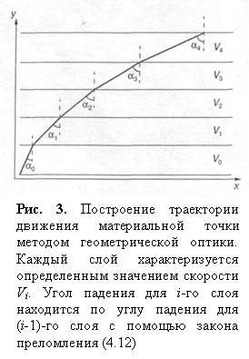 . Таким образом, для определения траектории материальной точки получается тот же алгоритм, что и для определения траектории луча (рис. 3).