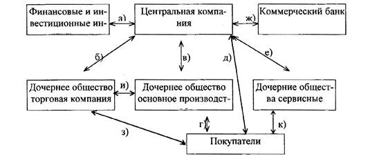 В-третьих, анализ деятельности действующих в Алтайском крае ФПГ показал, что состав денежных потоков имеет определенные отличия. Предварительно отметим, что: во-первых, координирующую роль осуществляет Центральная компания в "Сибагромаше" и ОАО "Золотое зерно Алтая" в группе, действующей де-факто; во-вторых, приводимая структура денежных потоков разработана нами в связи с тем, что данной проблеме в ФПГ не уделялось должного внимания.