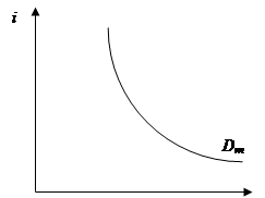 Совокупный спрос на деньги можно получить, суммировав спрос на деньги для сделок Dt и спрос на деньги со стороны активов Da. Кривая общего спроса Dm (рис. 1.3.2) не касается оси абсцисс, потому что норма процента не может упасть ниже минимальной предельной ставки imin. Она не касается и оси ординат, так как составляющая спроса на деньги Dt не зависит от ставки процента.