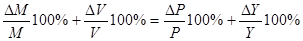 Уравнение обмена может быть представлено в темповой записи (для небольших изменений входящих в него величин):