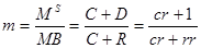 Денежный мультипликатор можно представить через отношение наличность-депозиты cr (коэффициент депонирования) и резервы-депозитов rr (норму резервирования):