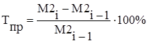 1) темпы прироста или снижения денежной массы (агрегат М2) по отношению к предыдущему году: