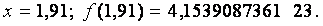 2. Вычислить одно значение заданной функции для промежуточного значения аргумента