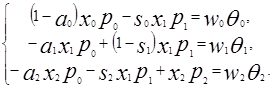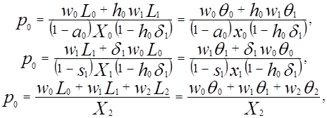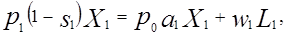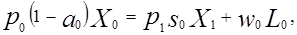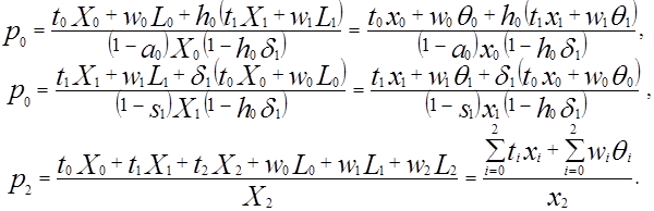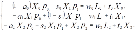 - соответственно цена продукции и ставка заработной платы в j – м секторе, j=0, 1, 2. Если разделить левые и правые части равенств на L, то уравнения (13) примут вид