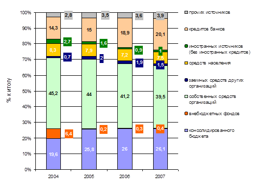 Рис.4. Инвестиции в основной капитал по источникам финансирования